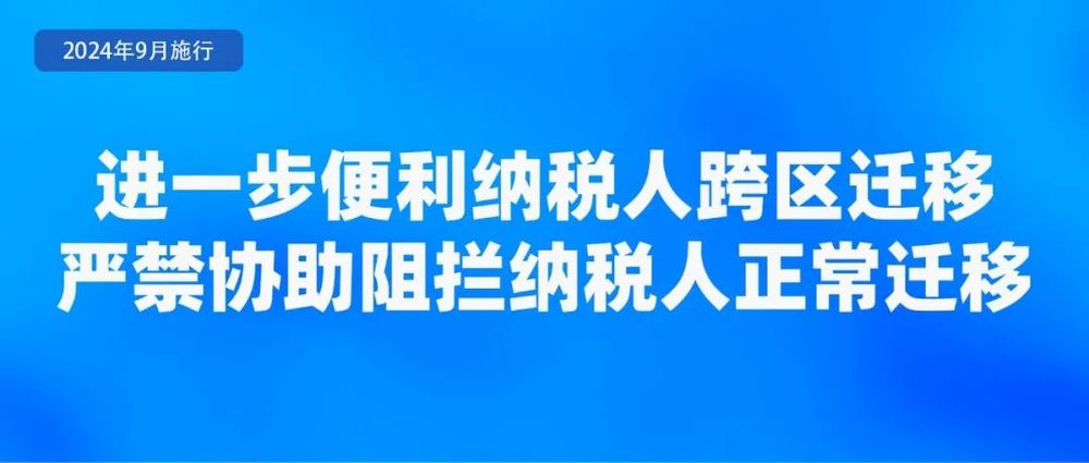 国家税务总局印发《关于进一步便利纳税人跨区迁移 服务全国统一大市场建设的通知》,从“优化事前提醒”“提速事中办理”“完善事后服务”全环节推出系列举措。《通知》要求简化发票使用手续。对使用全面数字化的电子发票的纳税人,信息系统自动将其发票额度转至迁入地。《通知》要求,纳税人存在多缴税款的,信息系统自动提醒办理退税,对选择在迁移前办理退税的,税务机关应限时办理;对选择暂不退税的,税务机关辅导纳税人在迁移后办理退税。《通知》强调,严禁协助阻拦纳税人正常迁移,严禁违规发起风险任务阻断纳税人迁移,严禁额外增设条件门槛阻碍纳税人迁移。《通知》自9月1日起执行。