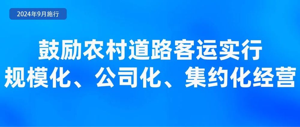 交通运输部印发《农村道路客运运营服务指南(试行)》,自2024年9月1日起实施。《指南》提出,鼓励农村道路客运实行规模化、公司化、集约化经营。农村道路客运经营者需取得道路旅客运输经营许可,按规定配备符合运营要求的客运车辆,聘用与运营业务相适应的驾驶人员及管理服务人员,在规定的经营范围内开展运营活动。农村班车客运(含公交化运营)和区域经营农村道路客运原则上实行政府指导价管理;预约响应农村道路客运可执行市场调节价,但服务价格原则上不高于当地农村班车客运指导价基准价格的2倍,并保持价格相对稳定。