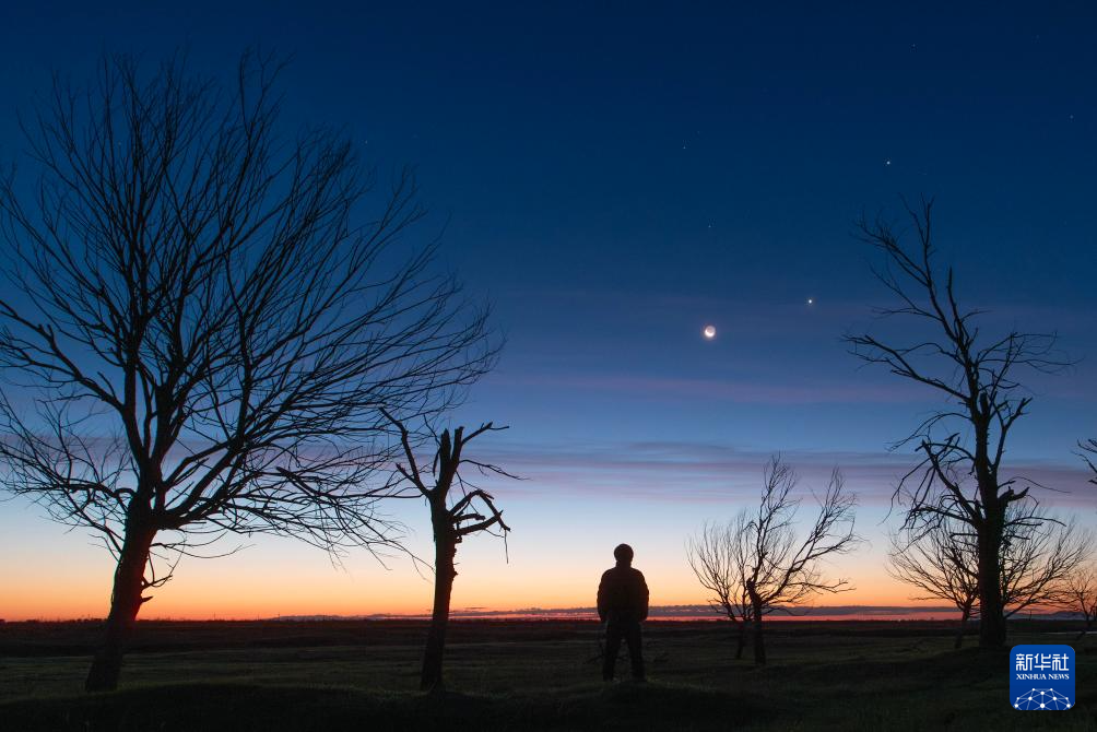 8月21日,在黑龙江省佳木斯市富锦市拍摄的“双星伴月”。新华社发(曲玉宝摄)