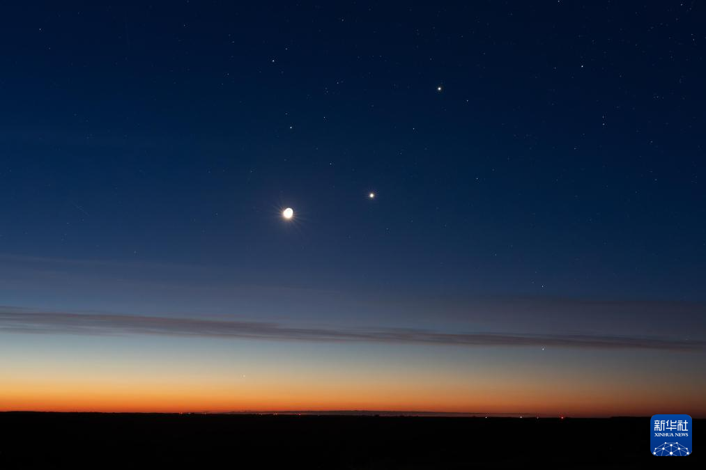8月20日至21日凌晨,金星、木星与一轮弯月在东南方低空上演“双星伴月”。
