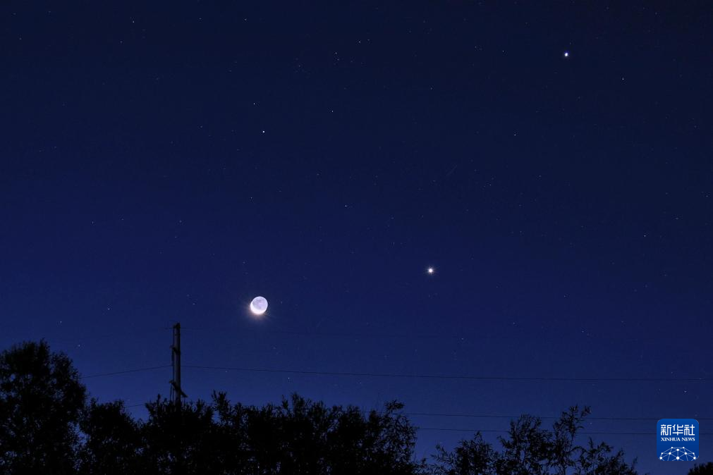 8月21日凌晨,在黑龙江省伊春市嘉荫县拍摄的“双星伴月”。新华社发(李绍军摄)