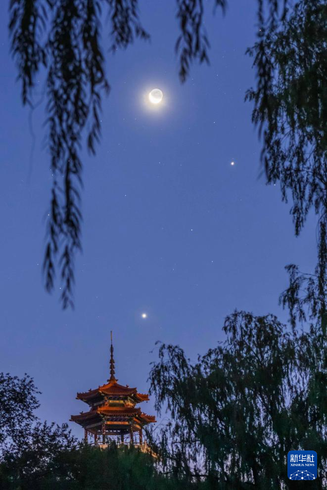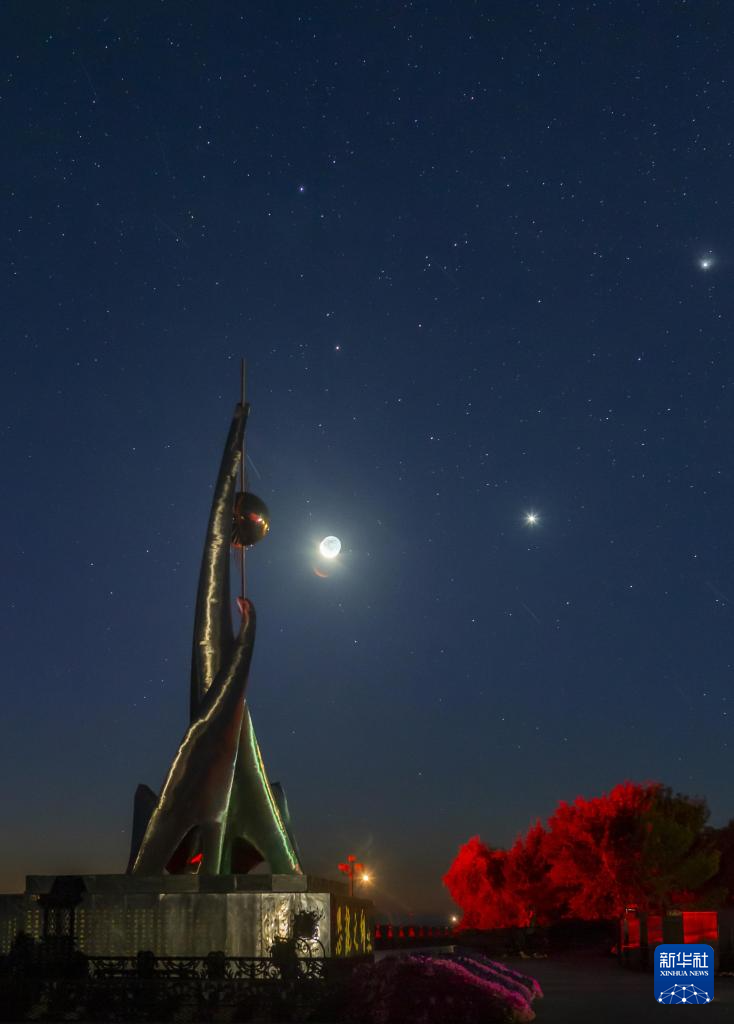 8月20日凌晨,在黑龙江省齐齐哈尔市拍摄的“双星伴月”。新华社发(王勇刚摄)