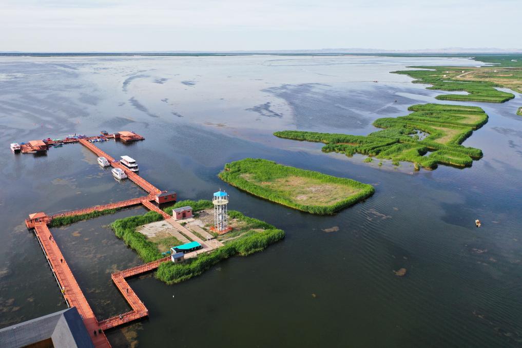 这是6月4日拍摄的乌梁素海景色(无人机照片)。新华社记者李志鹏摄