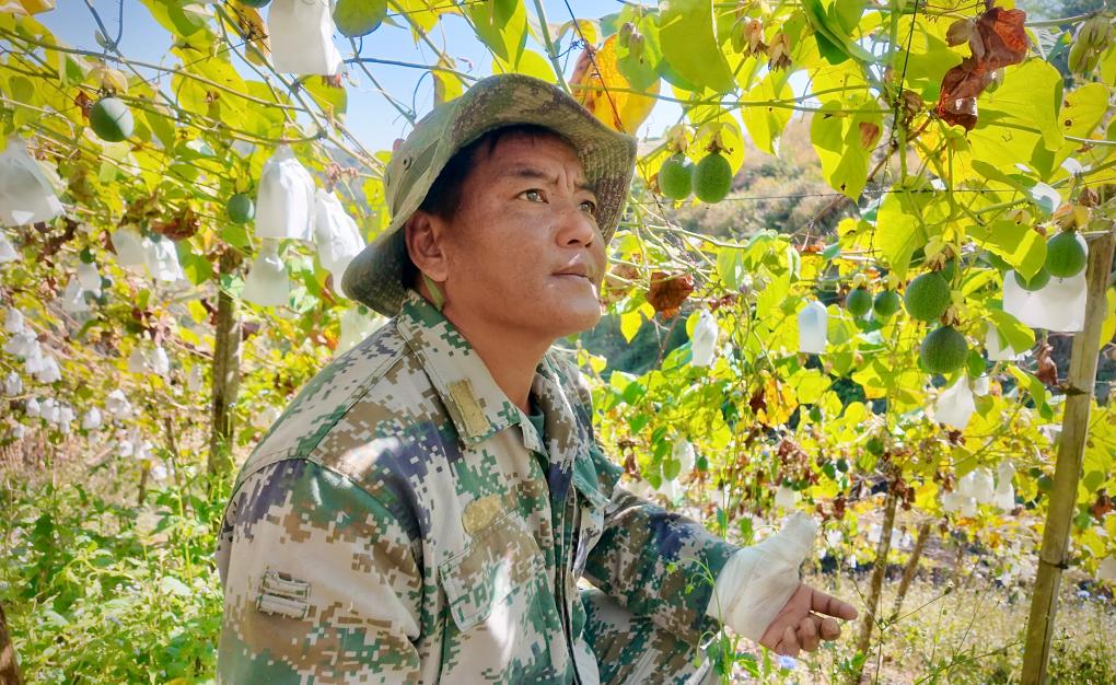 腊疯在地里采摘热情果。新华社记者 王贤思 摄