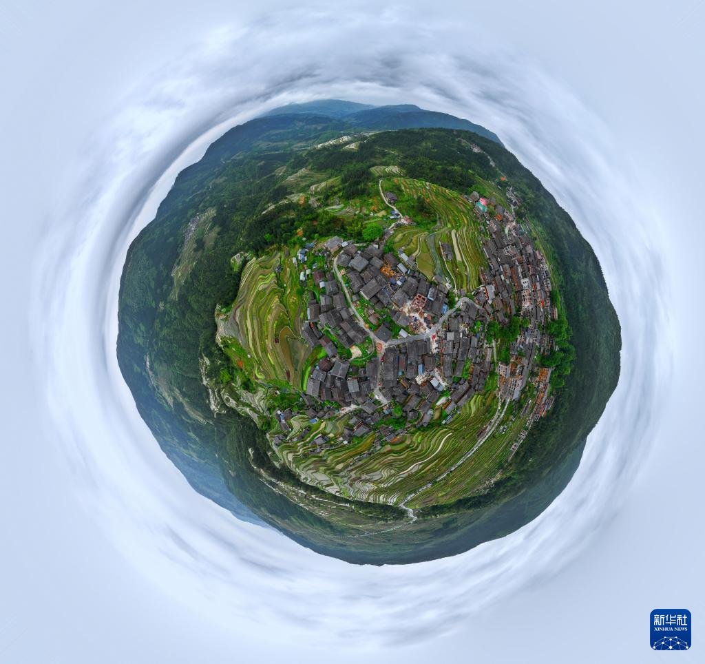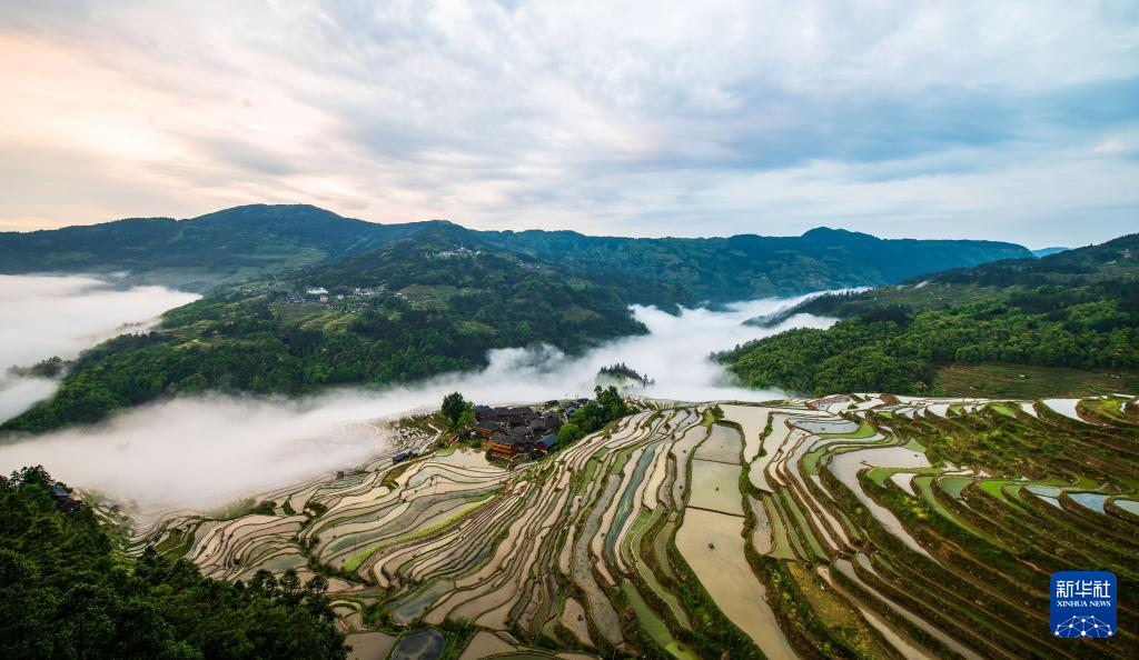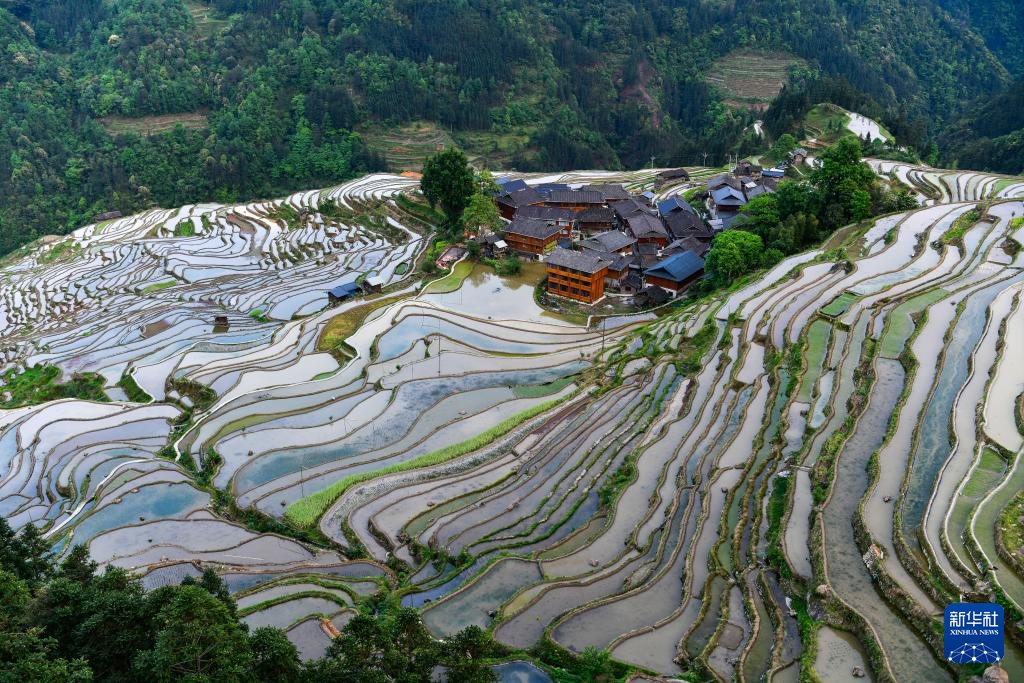 这是4月25日拍摄的贵州省从江县加榜梯田与苗寨。新华社记者 杨文斌 摄