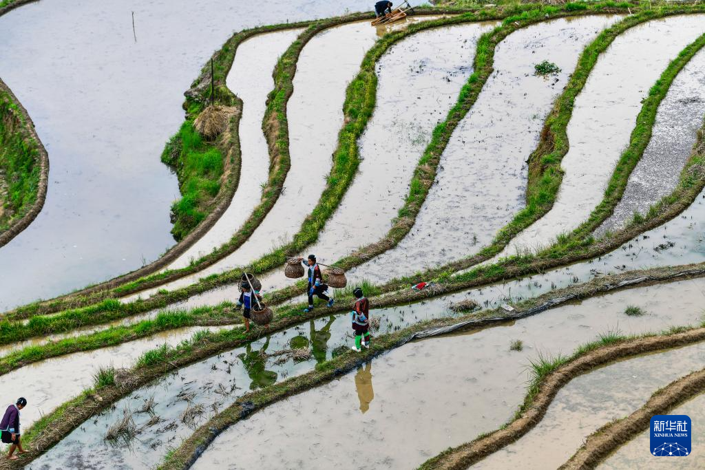 4月28日,村民在贵州省从江县加榜梯田劳作。新华社记者 杨文斌 摄