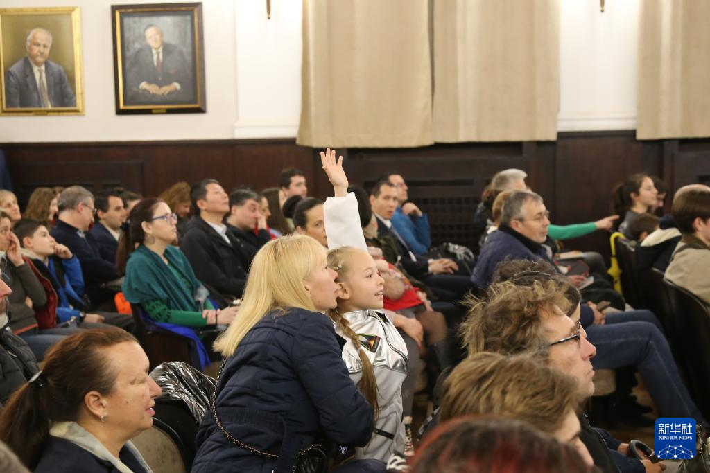 这是11月30日在保加利亚索非亚拍摄的“中国空间站天地对话”活动现场。新华社发(德拉加诺夫摄)