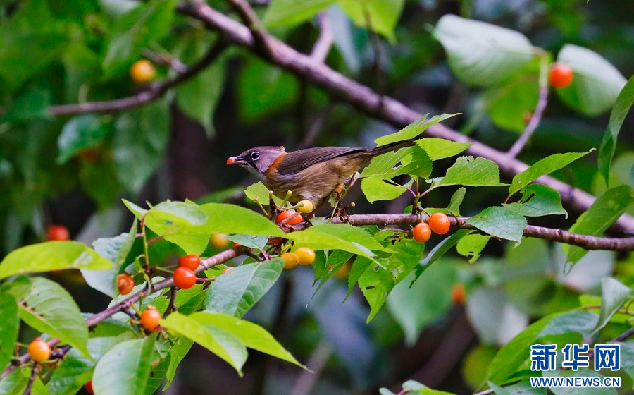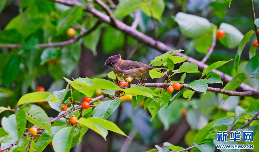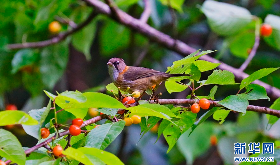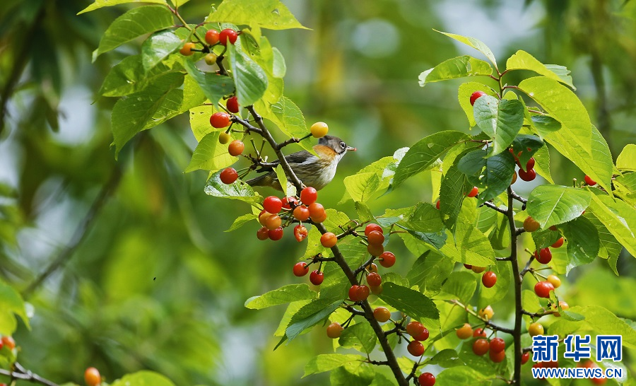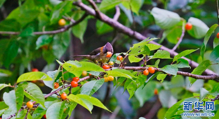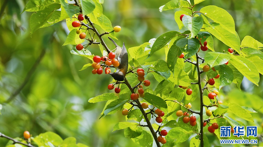 在云南省保山市龙陵县的山野上,零星分布的樱桃红了。走进细看,一颗颗黄中带红、红中带亮的樱桃缀满枝头,引来了唧唧喳喳的小鸟儿们前来抢“鲜”。近日,当地摄影爱好者用相机拍到了几段黄颈凤鹛在枝头吃红樱桃的有趣画面。(完)(邵维岑 郁云江 杨荣廷)