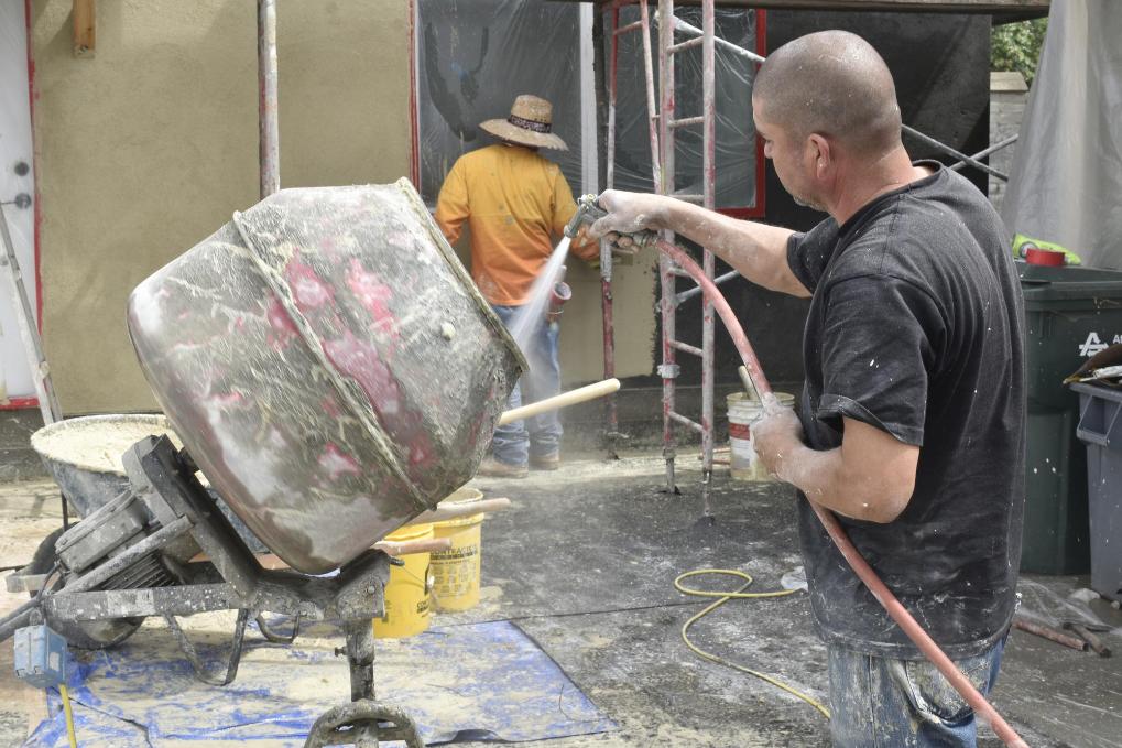 5月7日,建筑工人在美国加州洛杉矶县蒙罗维亚一处工地工作。新华社记者高山摄