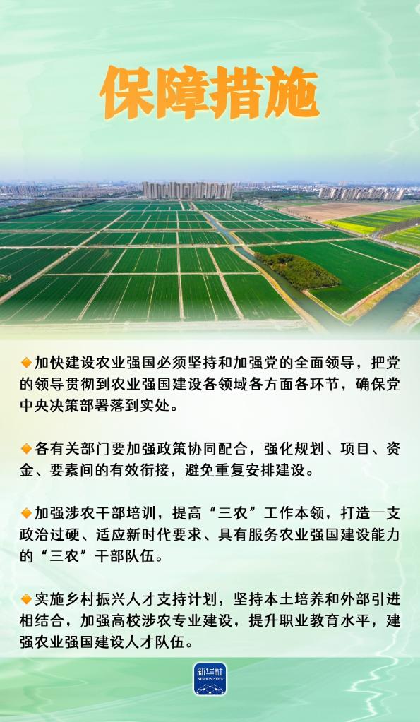 近日,中共中央、国务院印发《加快建设农业强国规划(2024-2035年)》,既指明了当前和未来一个时期加快建设农业强国的“线路图”,又详细勾画了怎样建设农业强国的“施工图”。农业强国的目标是什么?物质基础和科技支撑如何保障?小农户和现代农业发展怎样有机衔接?快随着我们的海报,一起来看看吧。