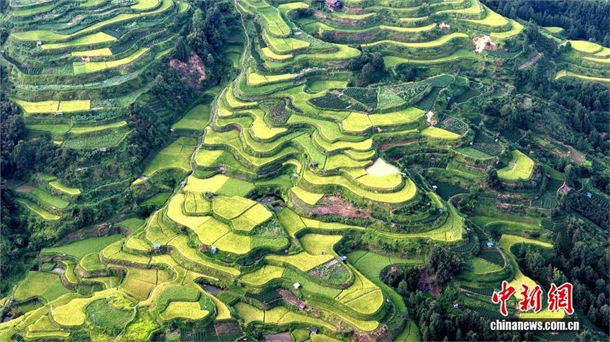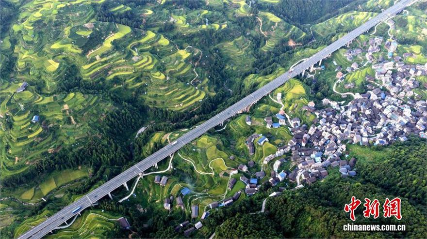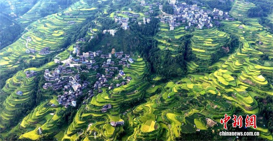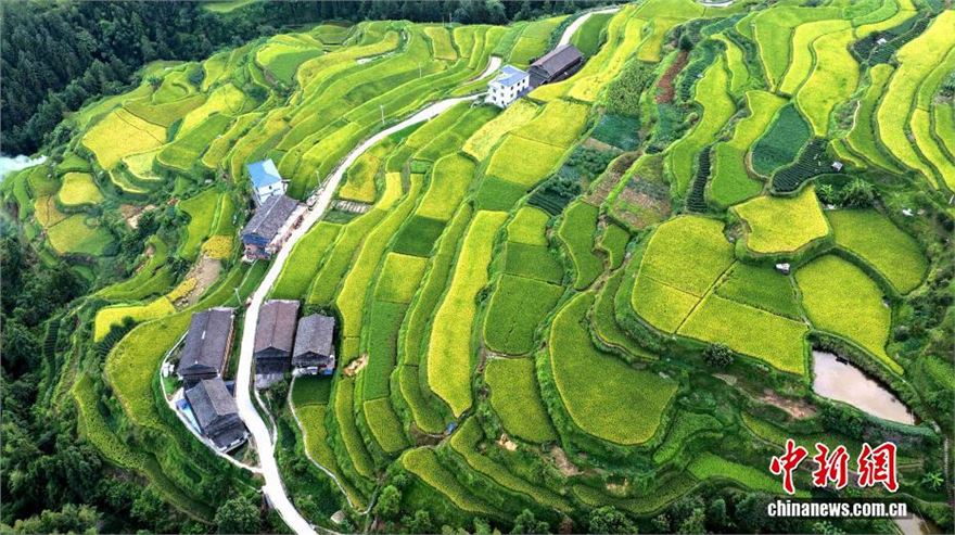 近日,广西三江侗族自治县独峒镇知了村、唐朝村的梯田景观美如画卷。无人机镜头下,层叠梯田似绿绸缠绕山峦,蜿蜒公路若银带穿行绿野。夕阳映照下,青山、梯田与村落相映成趣,绘就一幅秀美田园画卷,尽显侗乡生态之美。图为广西三江侗族自治县独峒镇知了村和唐朝村梯田美景。