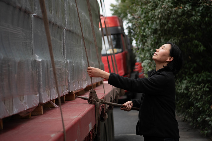 “女司机啊,厉害!”56岁的谢琳每次从她那辆3米宽、4米高、17.5米长的重型牵引平板式卡车上下来时,这是她最常听到的一句话。