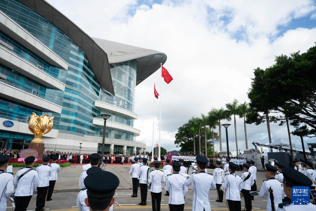 7月1日,香港特区政府在金紫荆广场举行升旗仪式,庆祝香港回归祖国28周年。