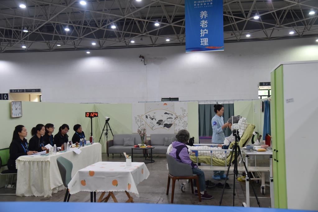 第二届全国乡村振兴职业技能大赛养老护理项目比赛现场。新华社记者 李凡 摄