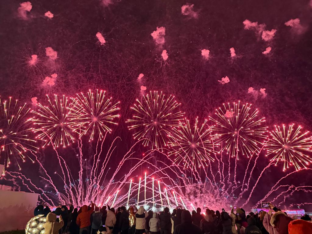 2025年12月31日晚,人们来到上海国际邮轮旅游度假区观看烟花秀。新华社发
