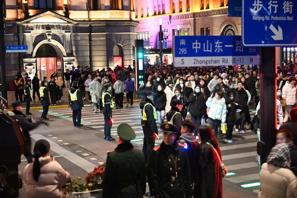 2025年12月31日晚,上海黄浦公安民警在外滩区域疏导交通。新华社发