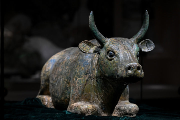 2024年11月26日在宁夏博物馆拍摄的鎏金铜牛。新华社记者 王鹏 摄