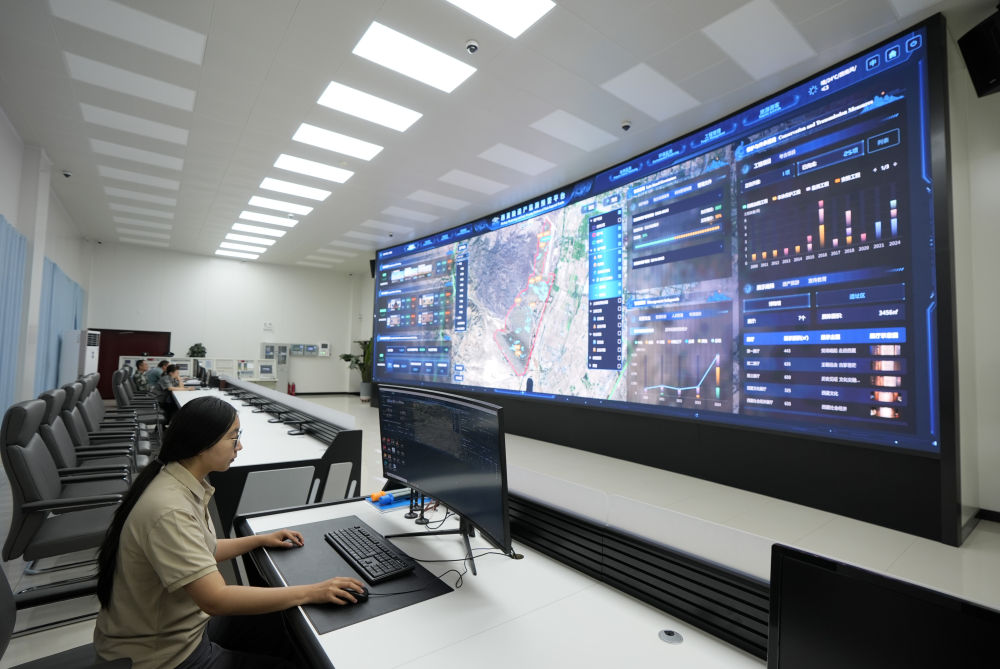 2025年7月9日,在宁夏银川,工作人员利用西夏陵遗产监测预警平台对陵区进行监测。新华社记者 杨植森 摄
