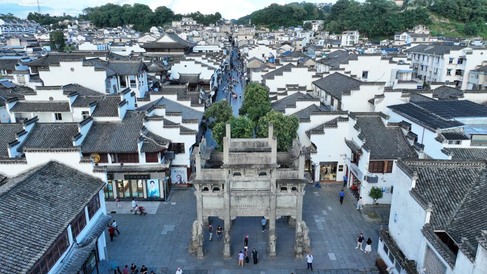 徽州古城内的“八脚牌坊”(无人机照片)。新华社发(樊成柱 摄)