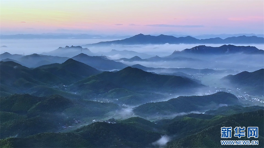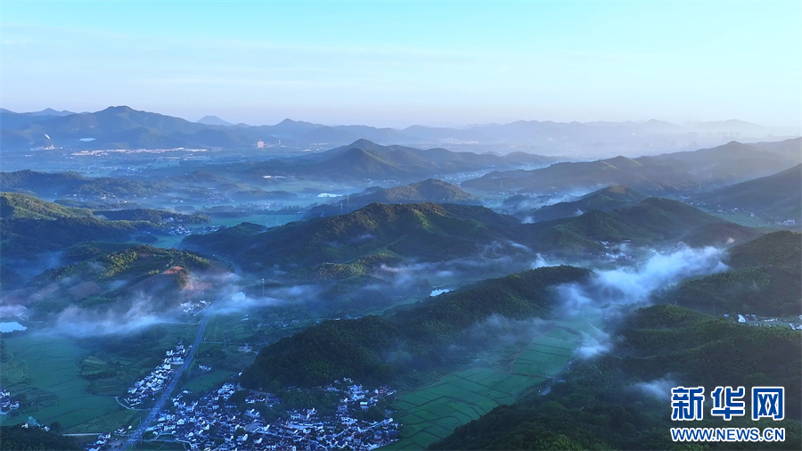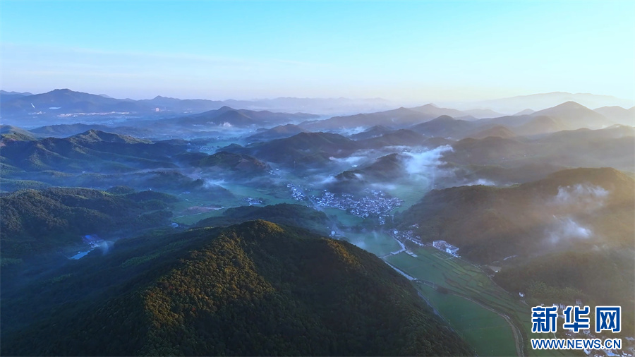 秋日清晨,安徽省芜湖市繁昌慢谷旅游度假区薄雾轻笼,连绵的青山与民居交错隐现,构成一幅气韵生动的水墨画卷。