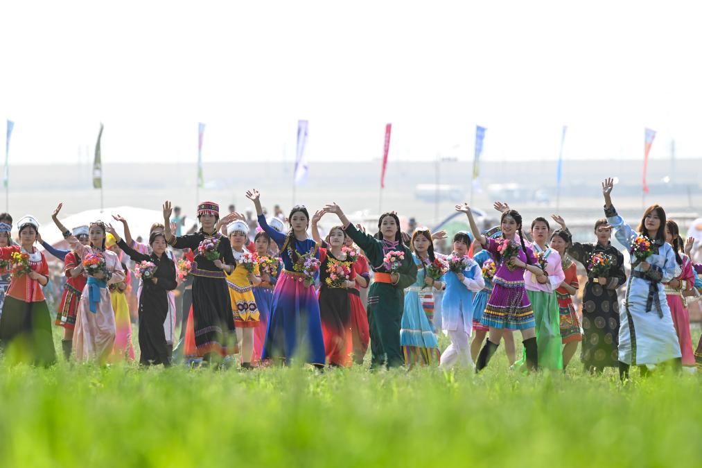 2024年7月14日,“相约草原·遇见那达慕”内蒙古第34届草原那达慕在锡林郭勒盟开幕,吸引游客前来感受草原文化。新华社记者 贝赫 摄