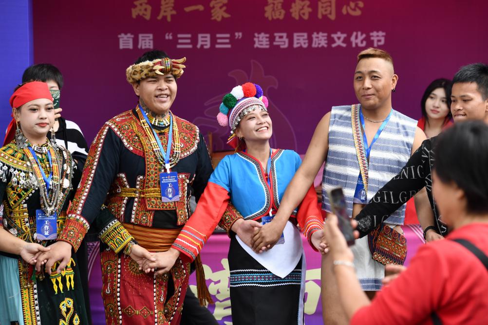 2024年4月11日,台湾同胞在福建省连江县小沧畲族乡举行的首届“三月三”连马民族文化节上表演高山族舞蹈。新华社记者 姜克红 摄