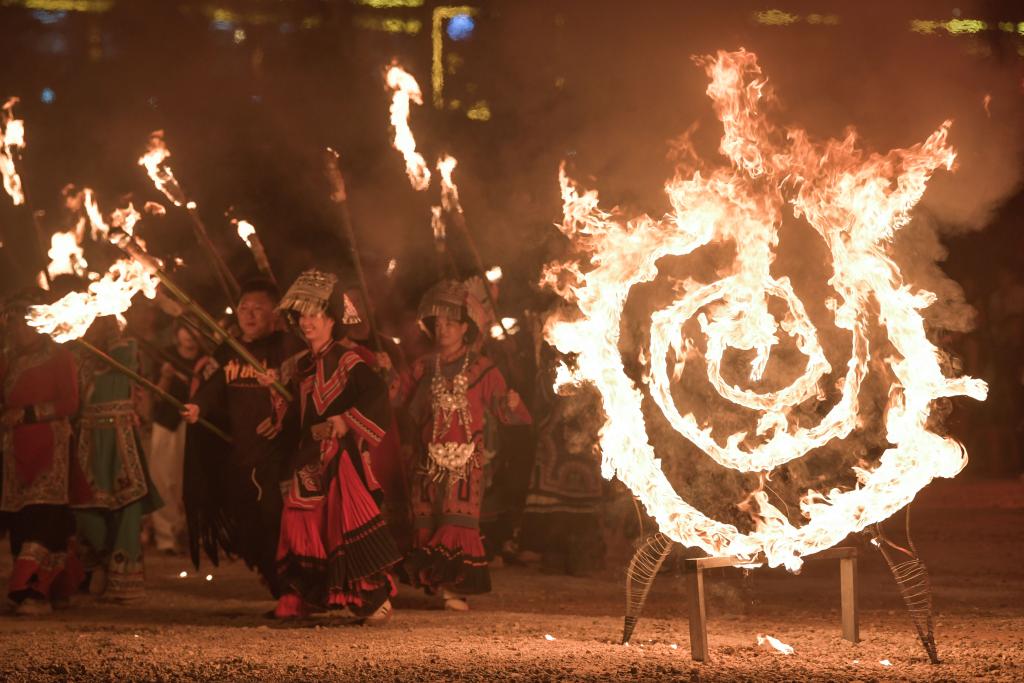 2024年7月29日,人们参加贵州省威宁县彝族火把节活动。新华社记者 杨文斌 摄