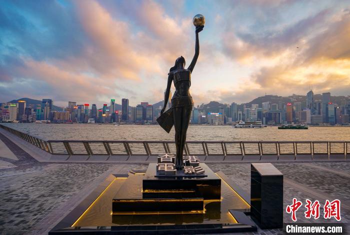 图为位于香港尖沙咀星光大道的香港电影金像奖雕塑。(资料照片) 中新社记者 张炜 摄