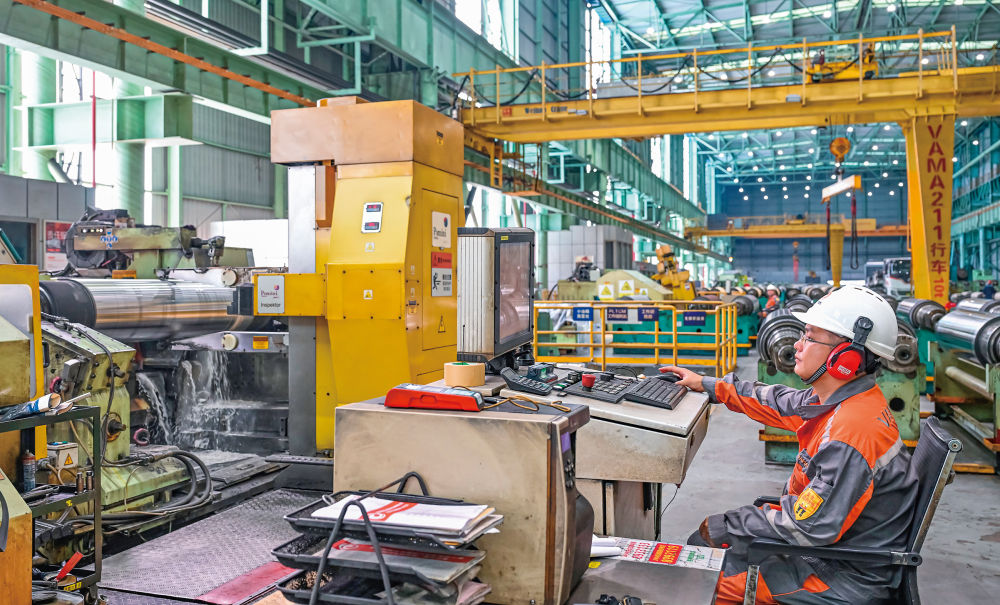 2025年11月5日,在位于娄底经开区的华菱安赛乐米塔尔汽车板有限公司,车间正开足马力忙生产。刘新山 摄