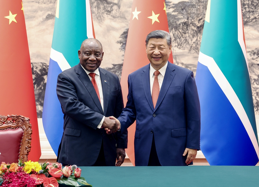 新华社北京9月2日电(记者郑明达、王普)9月2日下午,国家主席习近平在北京人民大会堂同来华出席中非合作论坛北京峰会并进行国事访问的南非总统拉马福萨举行会谈。两国元首宣布,将中南关系提升为新时代全方位战略合作伙伴关系。