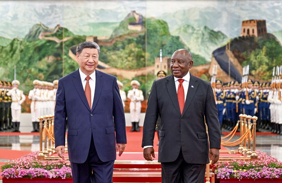 会谈前,习近平在人民大会堂北大厅为拉马福萨举行欢迎仪式。