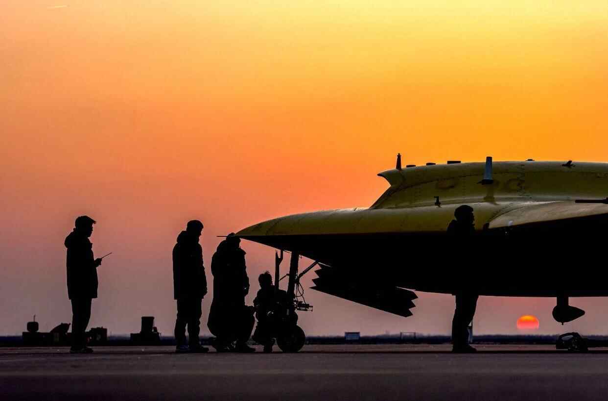 被牵引至指定位置的彩虹-7无人机,其独特的大展弦比飞翼式布局在熹微晨光中显现出流畅而充满未来感的轮廓。