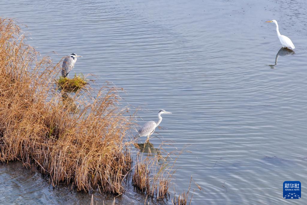 10月14日在黑龙江省同江市三江口国家湿地公园拍摄苍鹭和白鹭。