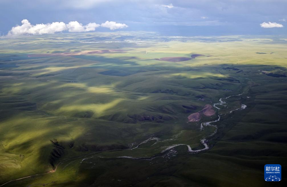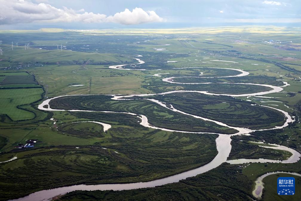 内蒙古呼伦贝尔草原上的河流(7月29日摄,手机照片)。