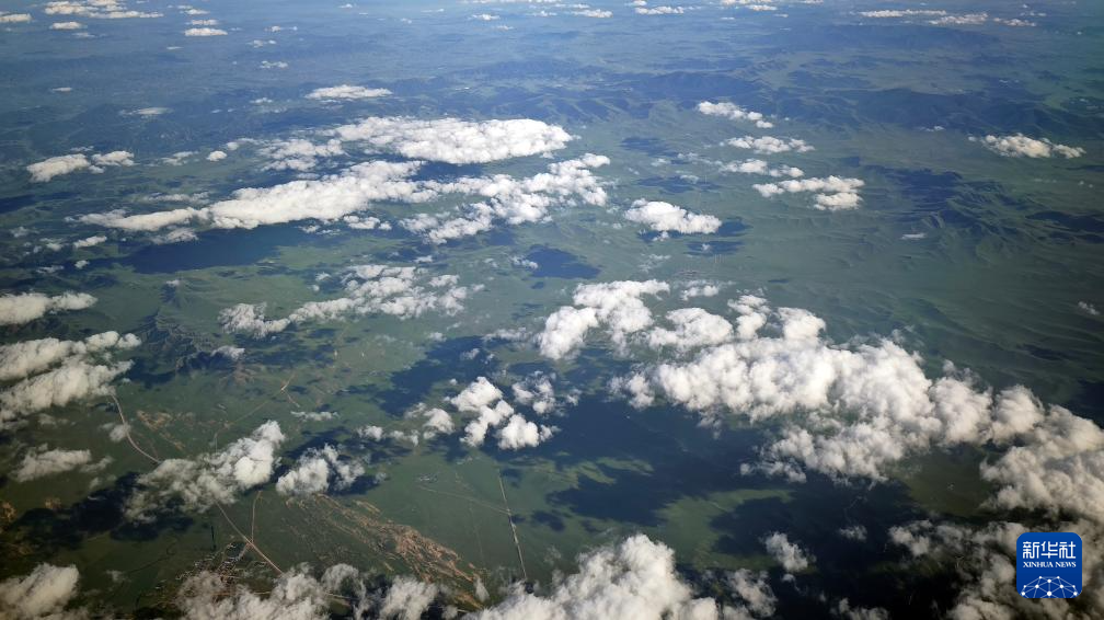 内蒙古锡林郭勒草原上的湖泊(7月29日摄,手机照片)。