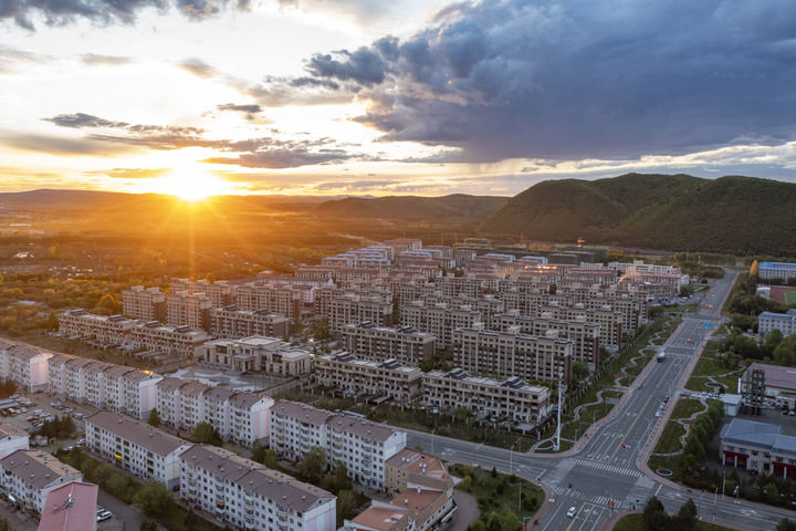 这是5月20日日落时分拍摄的伊春市伊美区一角。新华社记者 谢剑飞 摄