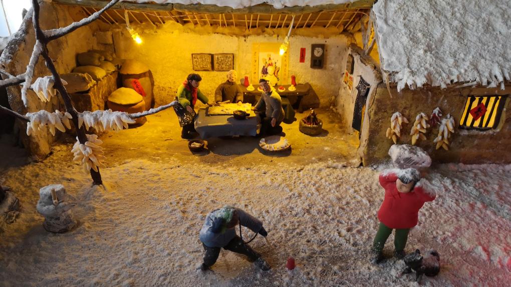 图为梁军的面塑场景作品《除夕农家院》局部,现陈列于滕州市张汪镇杨楼村古薛文化展馆。新华社记者丛佳鑫 摄