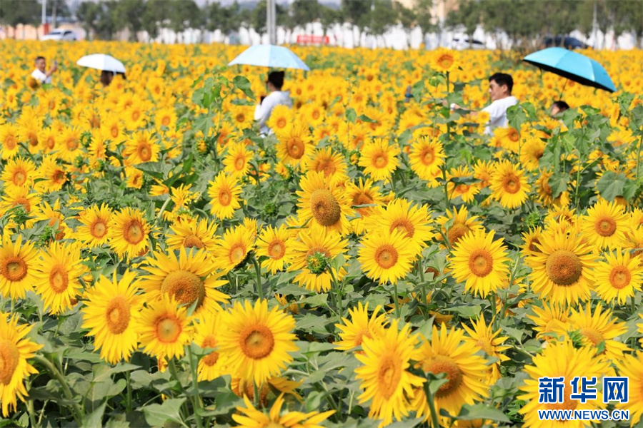日前,安徽省淮北市相山区渠沟镇张楼村种植的300余亩油葵竞相开放,盛开的葵花像一张张金色“笑脸”迎风摇曳,景色如画,成为当地乡村旅游的亮点,吸引众多游客前来观赏游玩。油葵种植不仅激活了乡村旅游、拉动了夏日经济,还带动了当地村民增收。