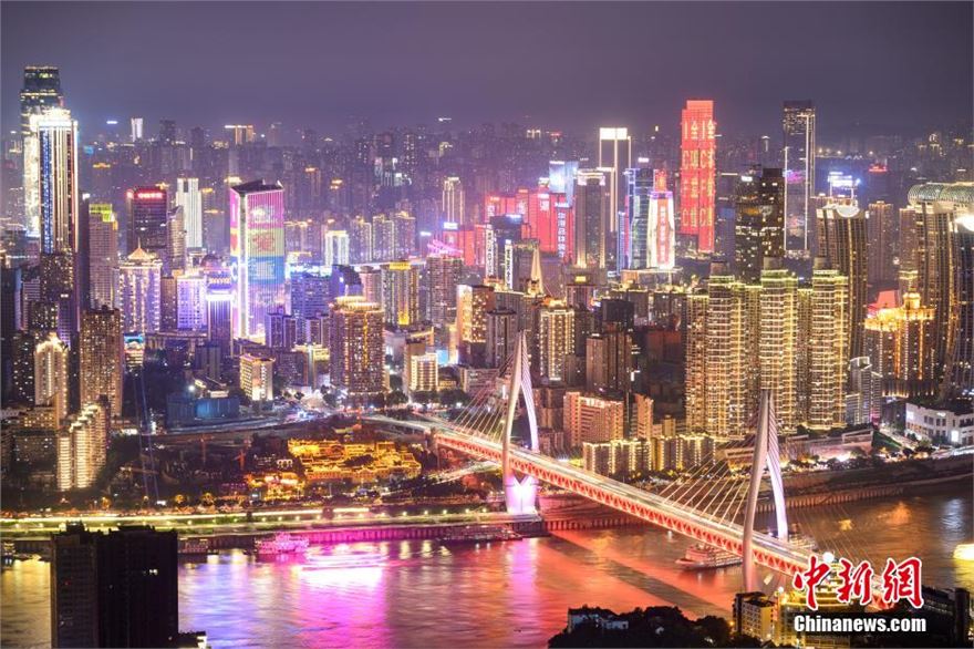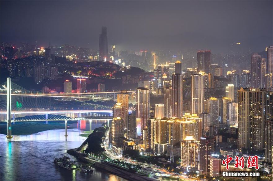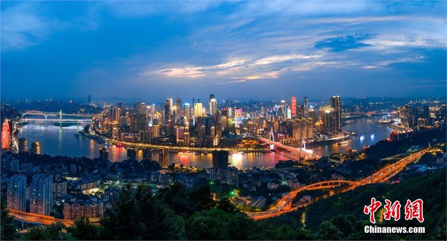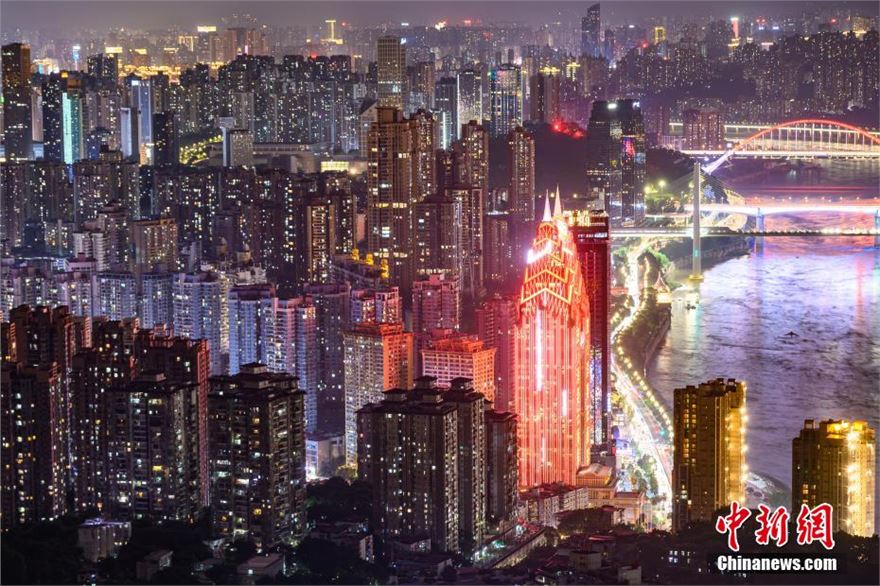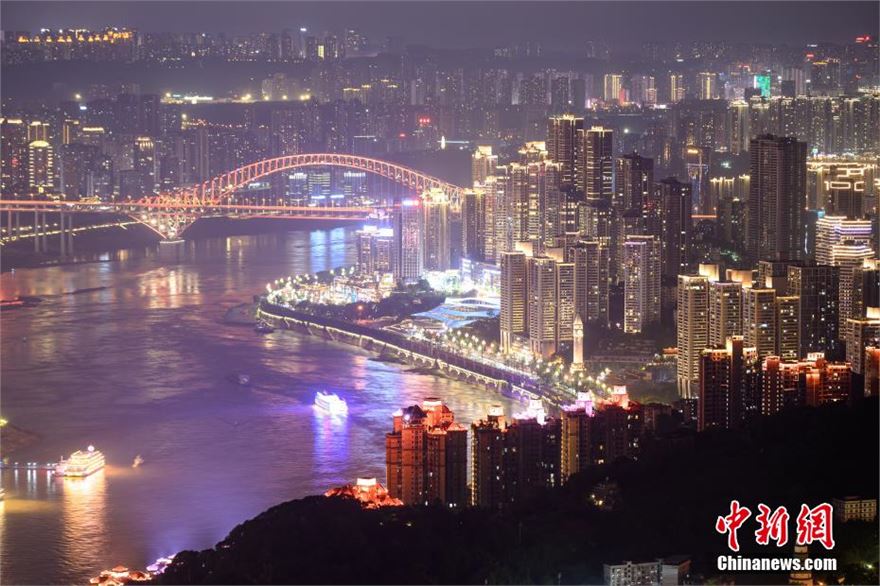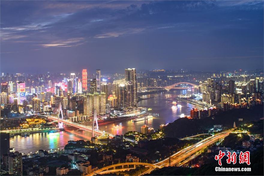 6月29日,重庆主城区的夜景。重庆是山城,也是江城,独特的地理地貌造就了这里绚烂的夜景。每当夜幕降临,从重庆南山俯瞰整个城市,江水与城市的霓虹灯光相互映衬,万家灯火如星辰般点缀在山谷之间,宁静且浪漫。