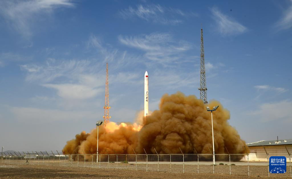 7月29日12时11分,双曲线一号遥十运载火箭在我国酒泉卫星发射中心发射升空,将搭载的恩施硒都山泉号卫星顺利送入预定轨道,飞行试验任务获得圆满成功。新华社发(汪江波 摄)