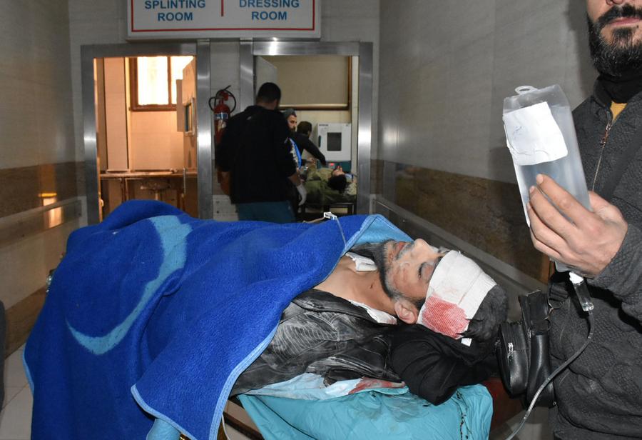 11月29日,在叙利亚阿勒颇,伤者被送往医院接受治疗。新华社发