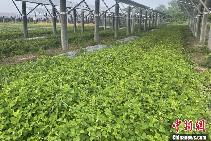 4月26日,沙琅镇水心村农光互补项目基地的广金钱草长势旺盛。黄天文 摄