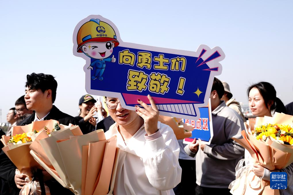 4月8日,人们在中国极地考察国内基地码头欢迎“雪龙”号凯旋。新华社记者 张建松 摄