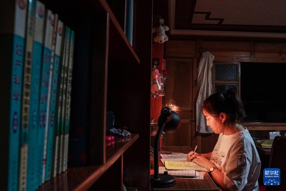 4月17日,黄爱玲在家中自学医学知识。新华社发(彭奕凯摄)