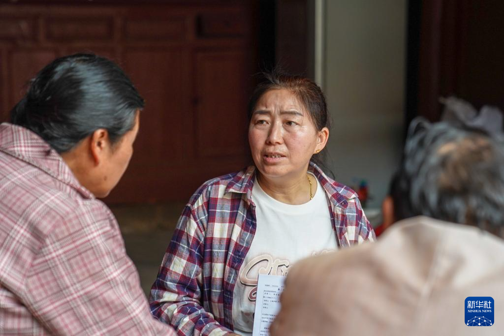4月18日,黄爱玲在村中向村民宣传医疗知识。新华社发(彭奕凯摄)