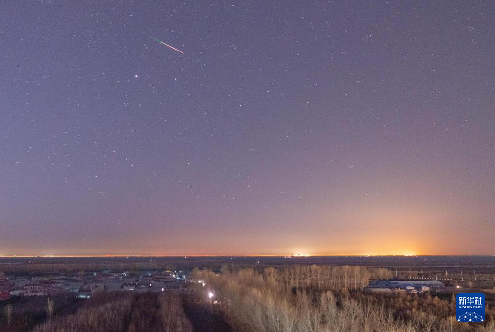 11月18日凌晨在黑龙江省齐齐哈尔市拍摄的狮子座流星雨。新华社发(王勇刚摄)
