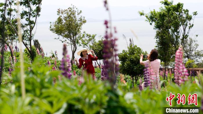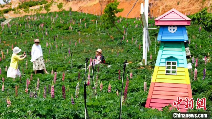 图为市民游客在鲁冰花花海中拍照。刘佳 摄