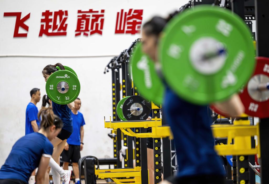 7月13日,中国女排队员在进行力量训练。新华社记者 魏培全 摄