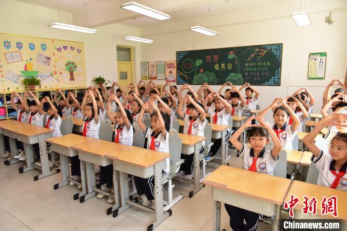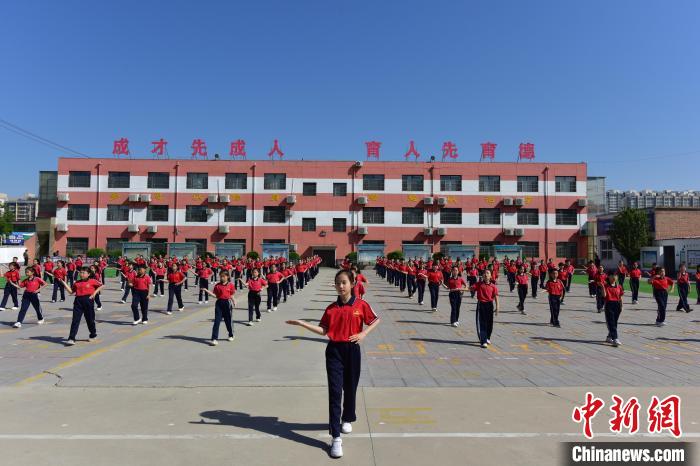 4月24日,伴随着下课铃声,河北省衡水市安平县多所中小学的学生随着音乐节奏摆臂起式,展示太极拳、创意课桌舞、韵律操等“花式”课间操。