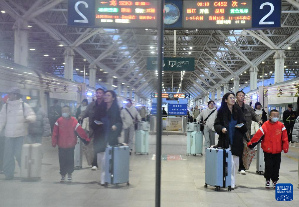 2月2日,旅客在云南丽江火车站乘车出行。新华社发(赵庆祖摄)